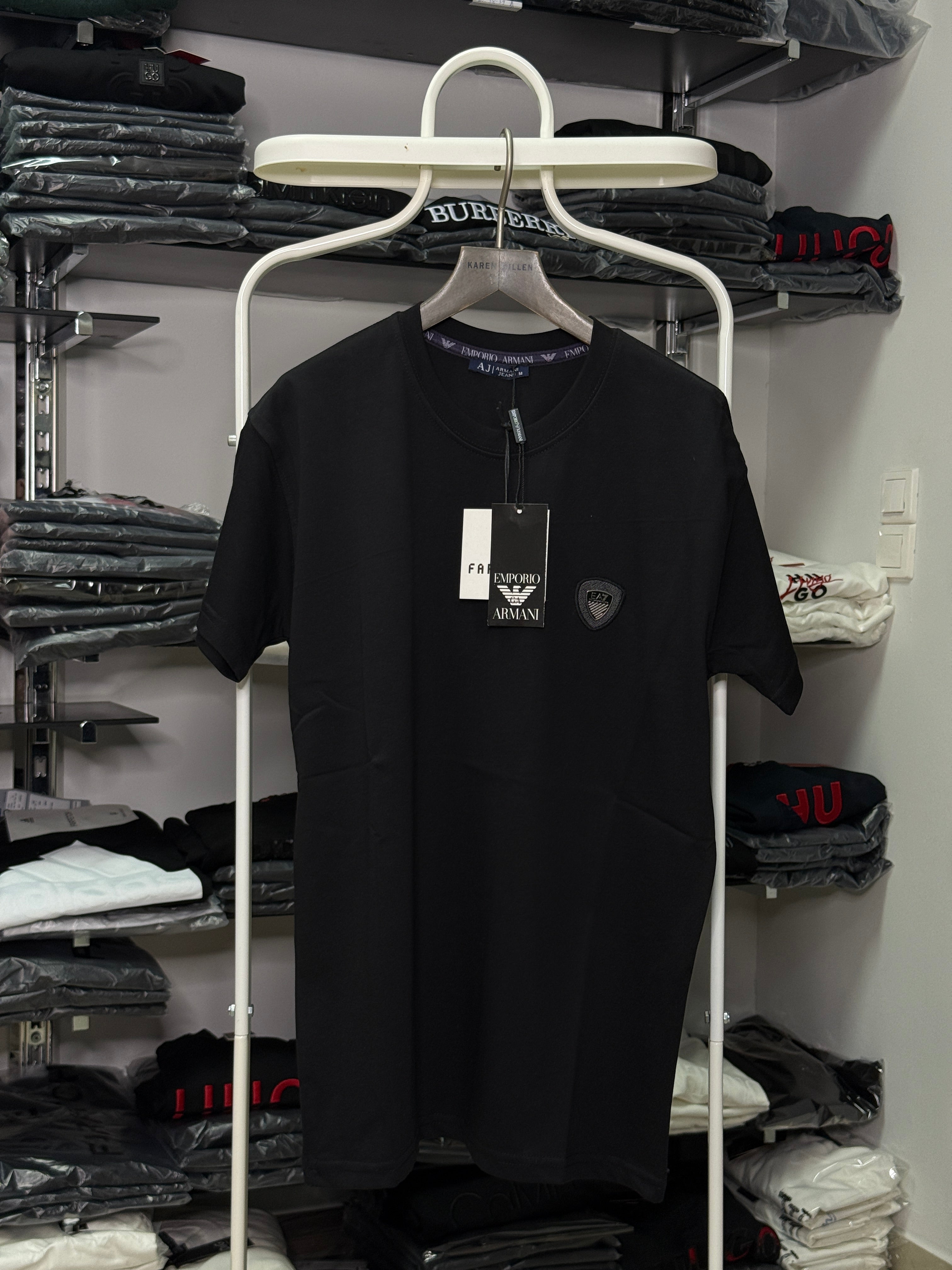 Ανδρικό κοντομάνικο t-shirt από τη EA7 Emporio Armani σε μαύρο χρώμα, με καθαρό και δυναμικό sporty-luxury χαρακτήρα. Στο στήθος διαθέτει μικρό shield logo EA7 σε patch, διακριτικό αλλά premium, που προσθέτει ταυτότητα χωρίς να αλλοιώνει το minimal design.