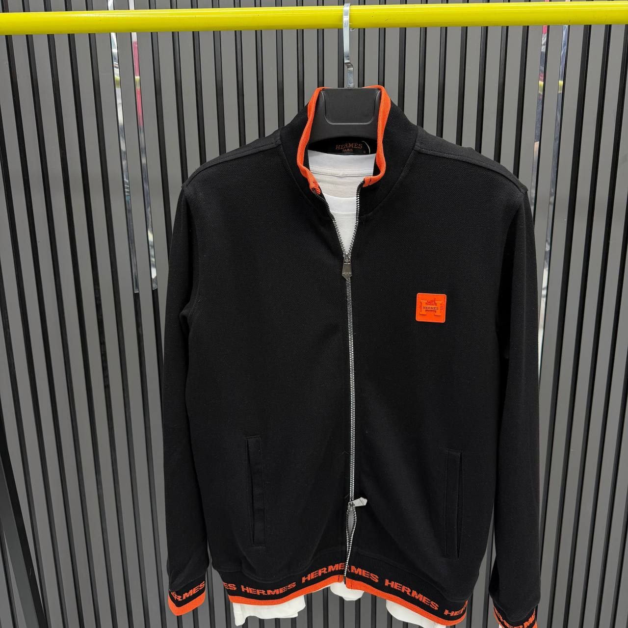 Ανδρική ζακέτα Hermès Inspired σε μαύρο χρώμα με έντονες πορτοκαλί λεπτομέρειες, σχεδιασμένη για όσους θέλουν luxury αισθητική με σύγχρονο street χαρακτήρα. Ένα κομμάτι που ξεχωρίζει διακριτικά, συνδυάζοντας minimal γραμμή με signature χρωματικές πινελιές.