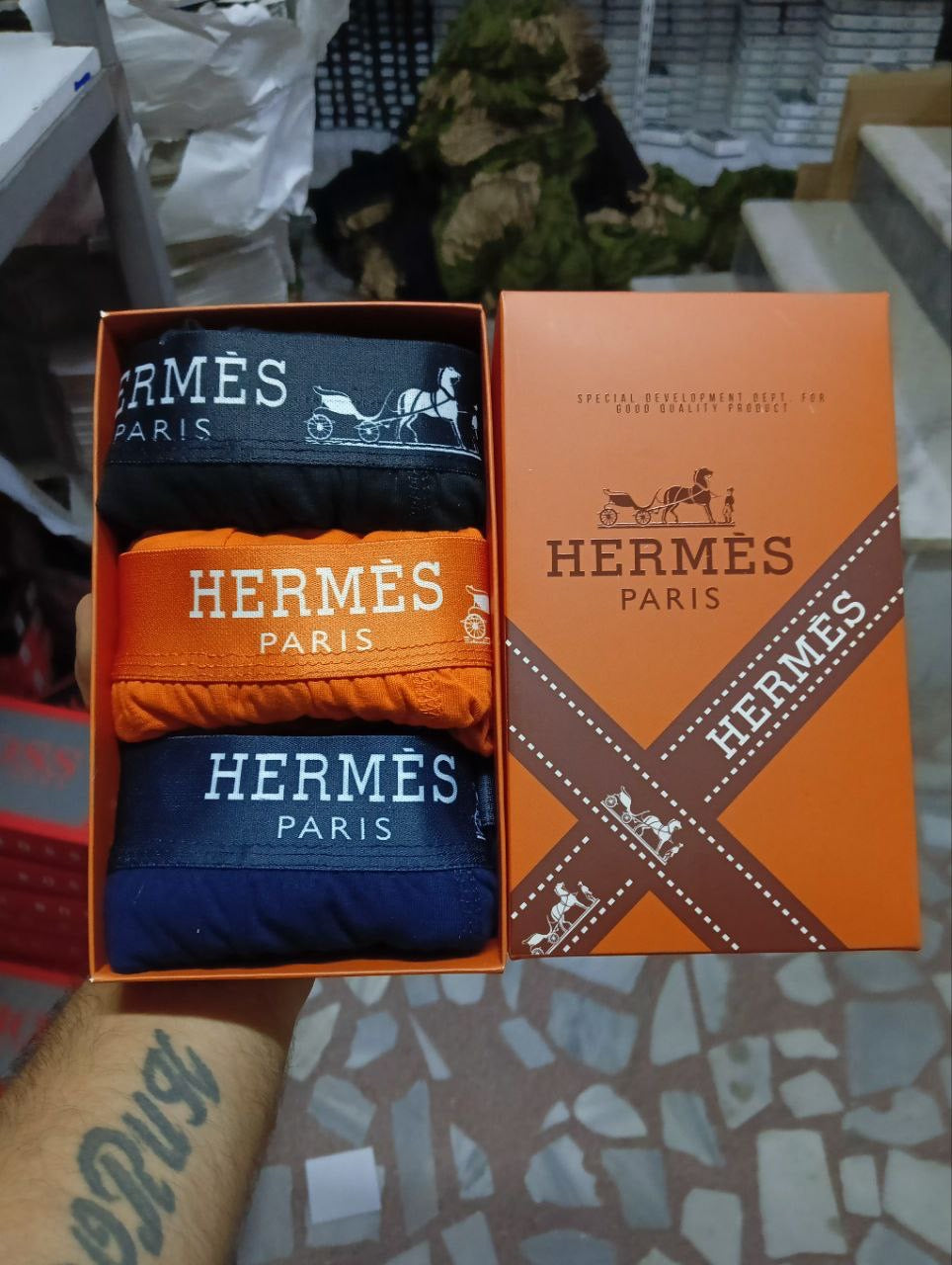 Ανδρικά boxer Hermès Paris σε πολυτελές σετ 3 τεμαχίων, εμπνευσμένο από την απόλυτη γαλλική κομψότητα. Κλασικός συνδυασμός μαύρου, navy και Hermès orange, με εμβληματική ελαστική ζώνη Hermès Paris και διακριτικά στοιχεία άμαξας, που αποπνέουν διαχρονικό luxury χαρακτήρα.