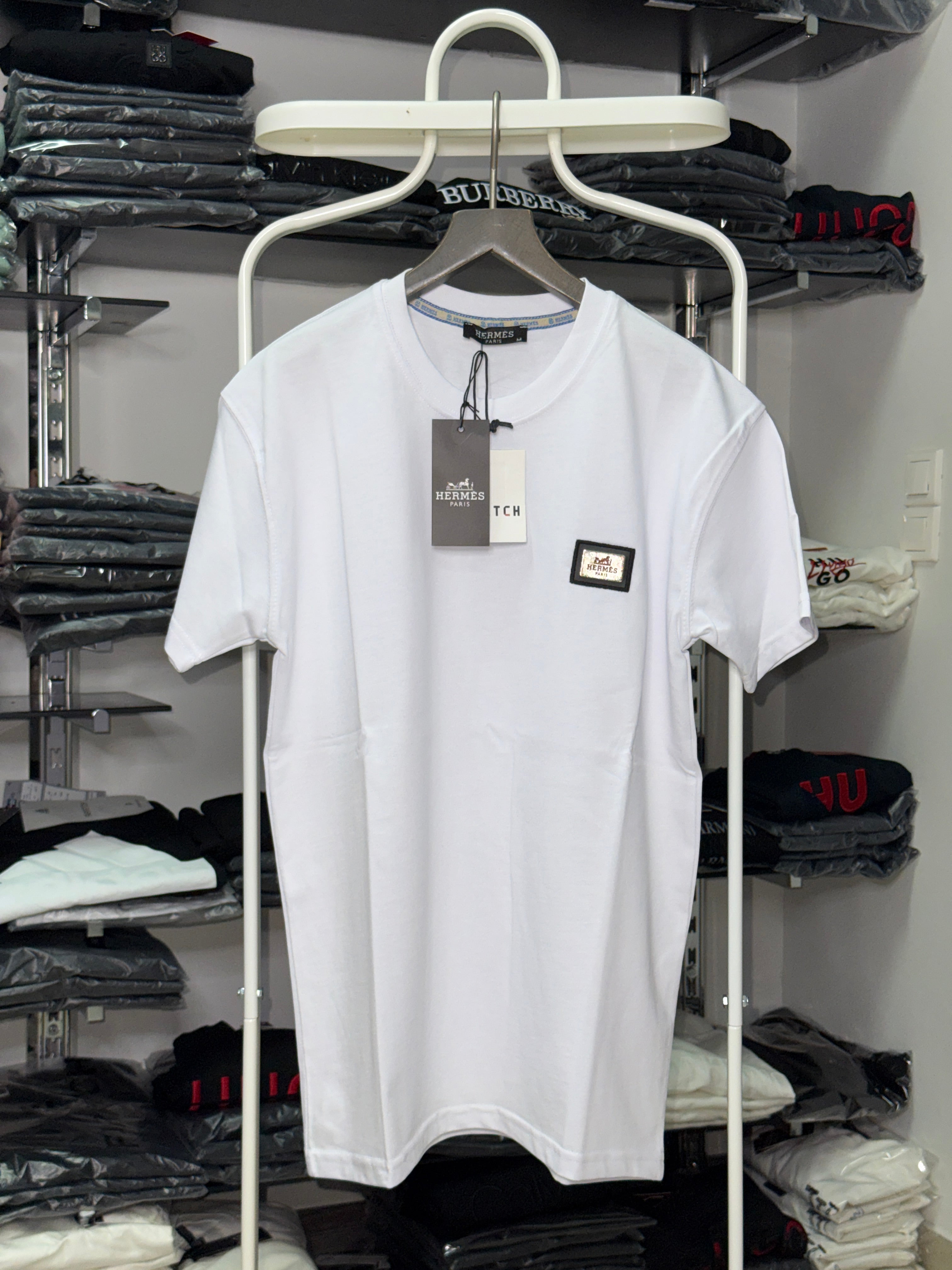 Ανδρικό κοντομάνικο t-shirt από την HERMÈS Paris σε κλασικό λευκό χρώμα, με minimal και κομψό σχεδιασμό. Διαθέτει μεταλλικό logo patch στο στήθος, που προσθέτει διακριτικό luxury χαρακτήρα και ξεχωρίζει χωρίς υπερβολή.