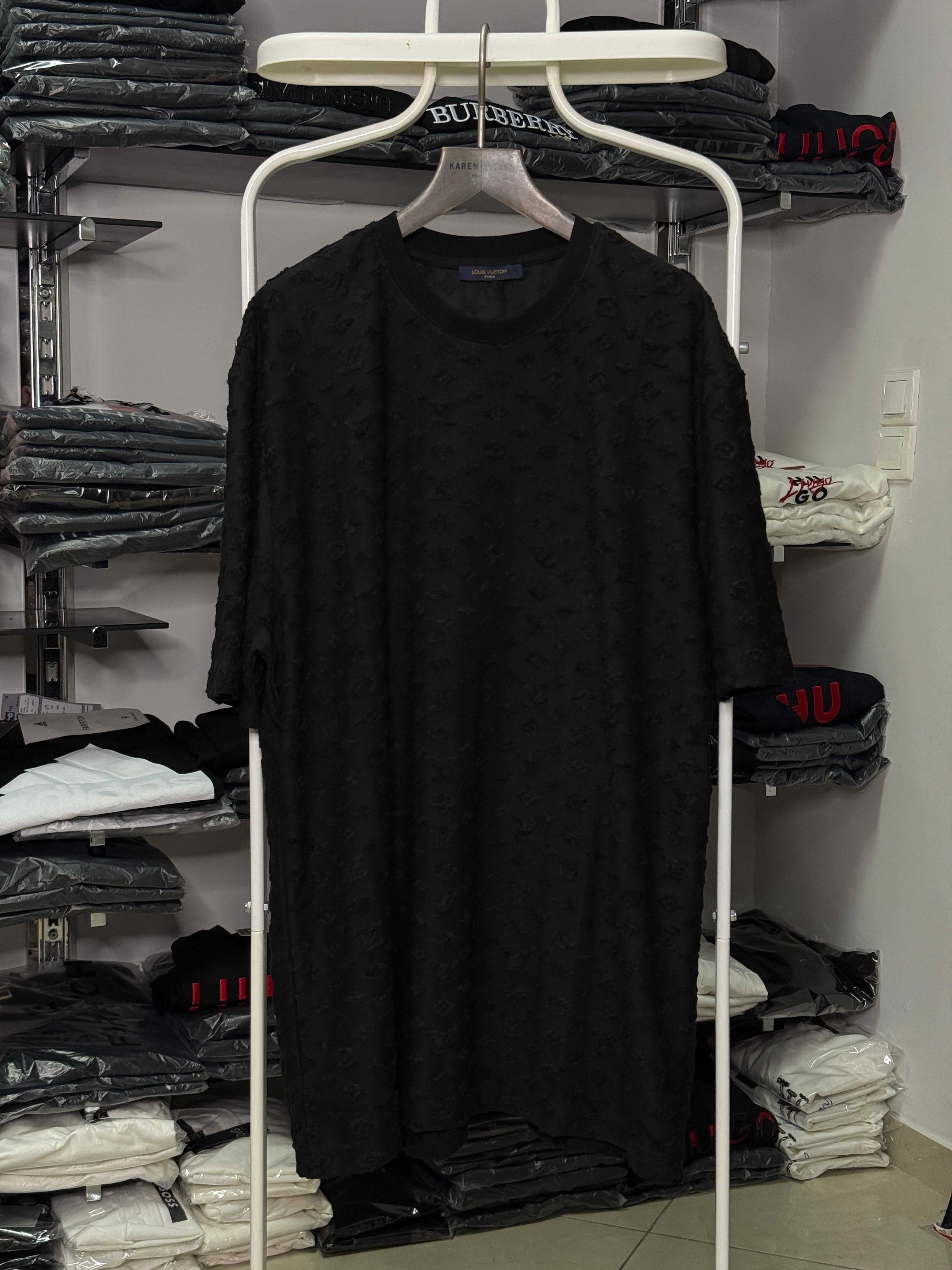 Ανδρικό κοντομάνικο t-shirt από τη Louis Vuitton, σε μαύρο χρώμα, με all-over ανάγλυφο μοτίβο monogram που καλύπτει διακριτικά όλη την επιφάνεια του υφάσματος. Το design είναι απόλυτα luxury και minimal, χωρίς έντονα prints, αναδεικνύοντας την ποιότητα και την υφή του υφάσματος.
