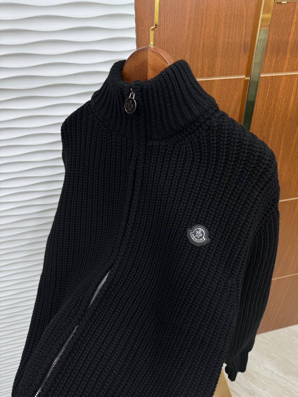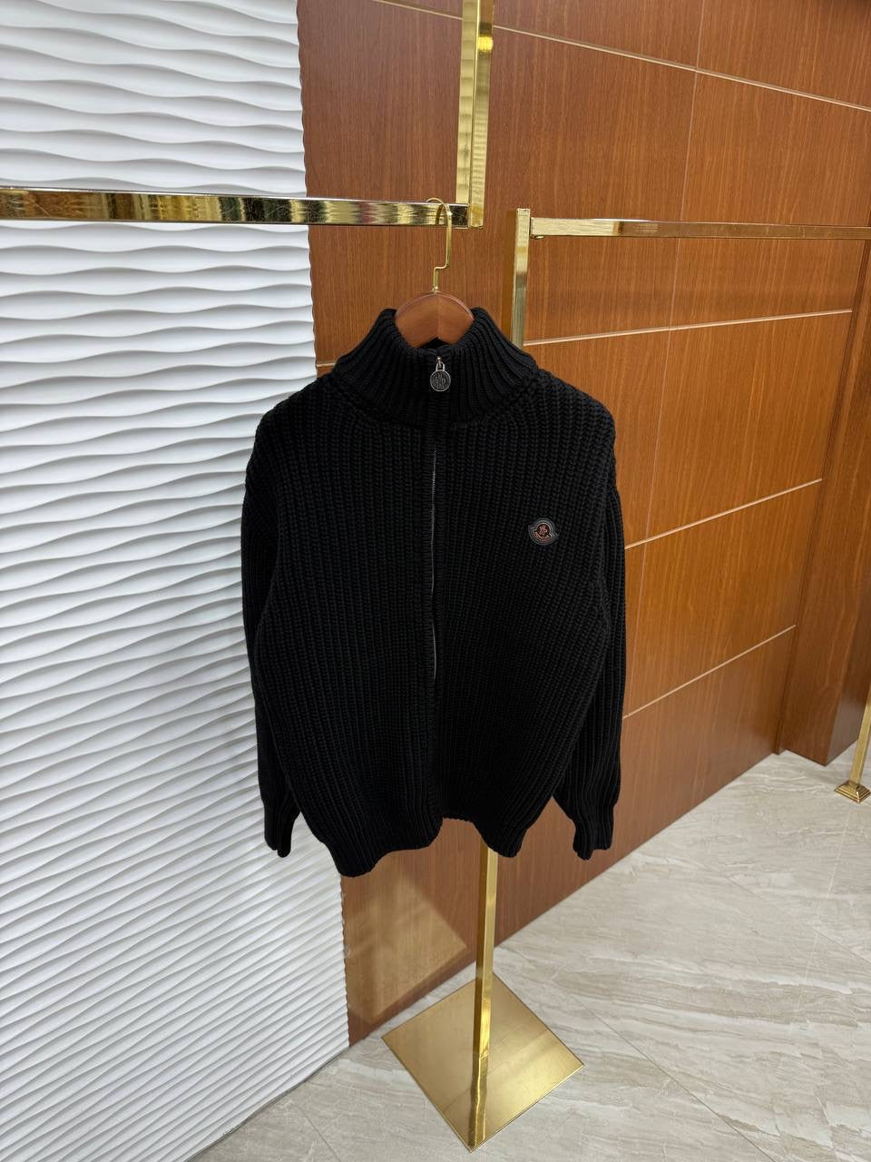 Η ζακέτα διαθέτει full zip κλείσιμο, ψηλό πλεκτό γιακά για επιπλέον άνεση και προστασία, καθώς και διακριτικό MONCLER badge στο στήθος που προσθέτει αυθεντικό luxury χαρακτήρα. Η πλέξη υψηλής ποιότητας προσφέρει ζεστασιά και άνετη εφαρμογή, καθιστώντας το κομμάτι ιδανικό για layering όλες τις εποχές.