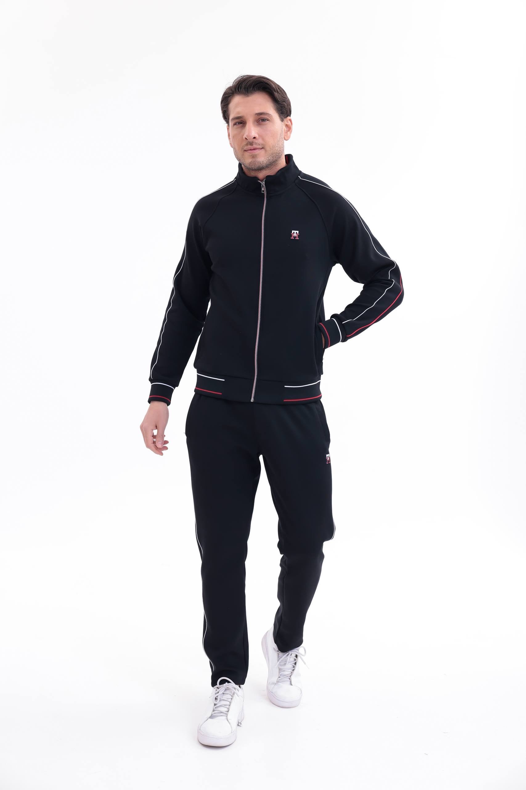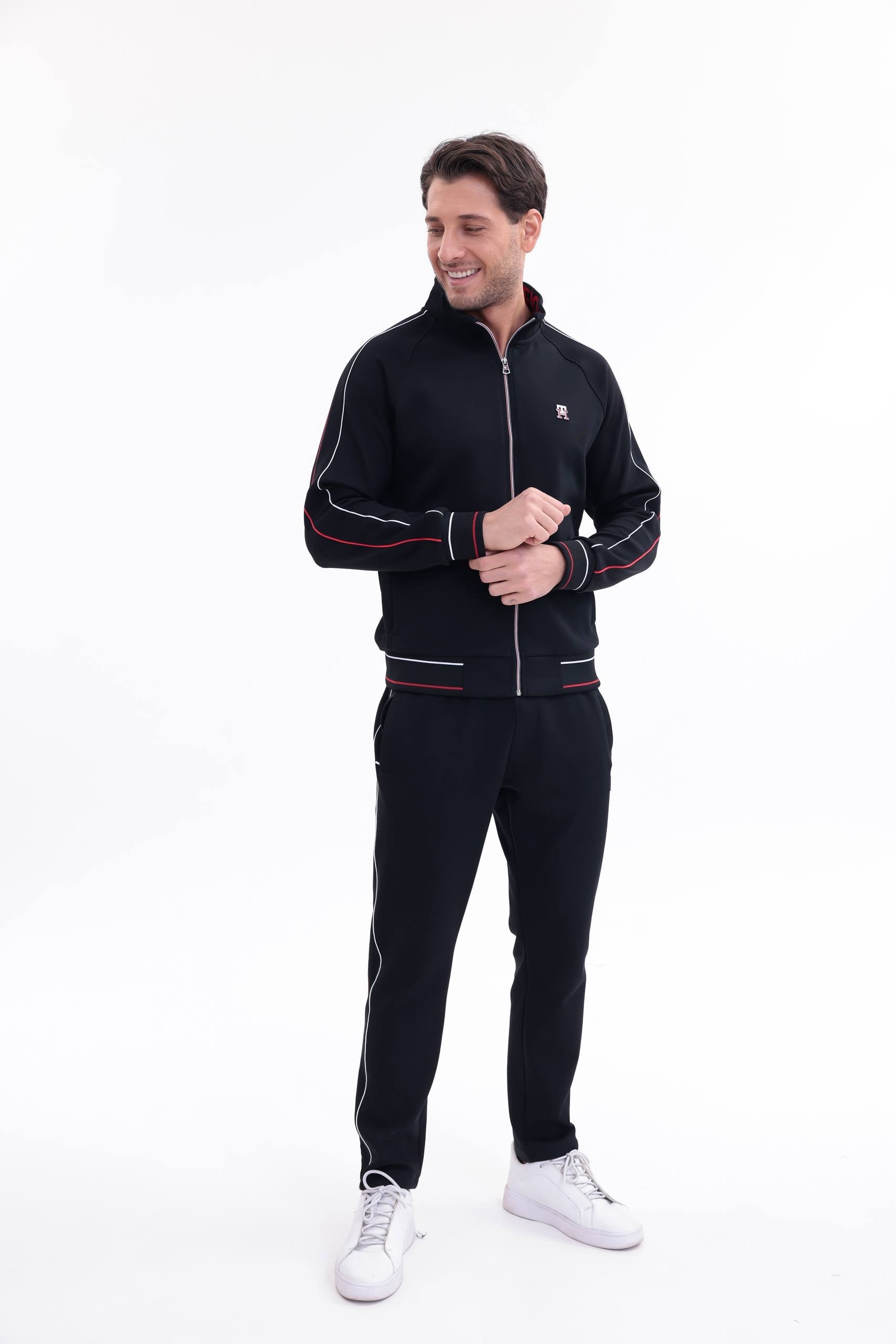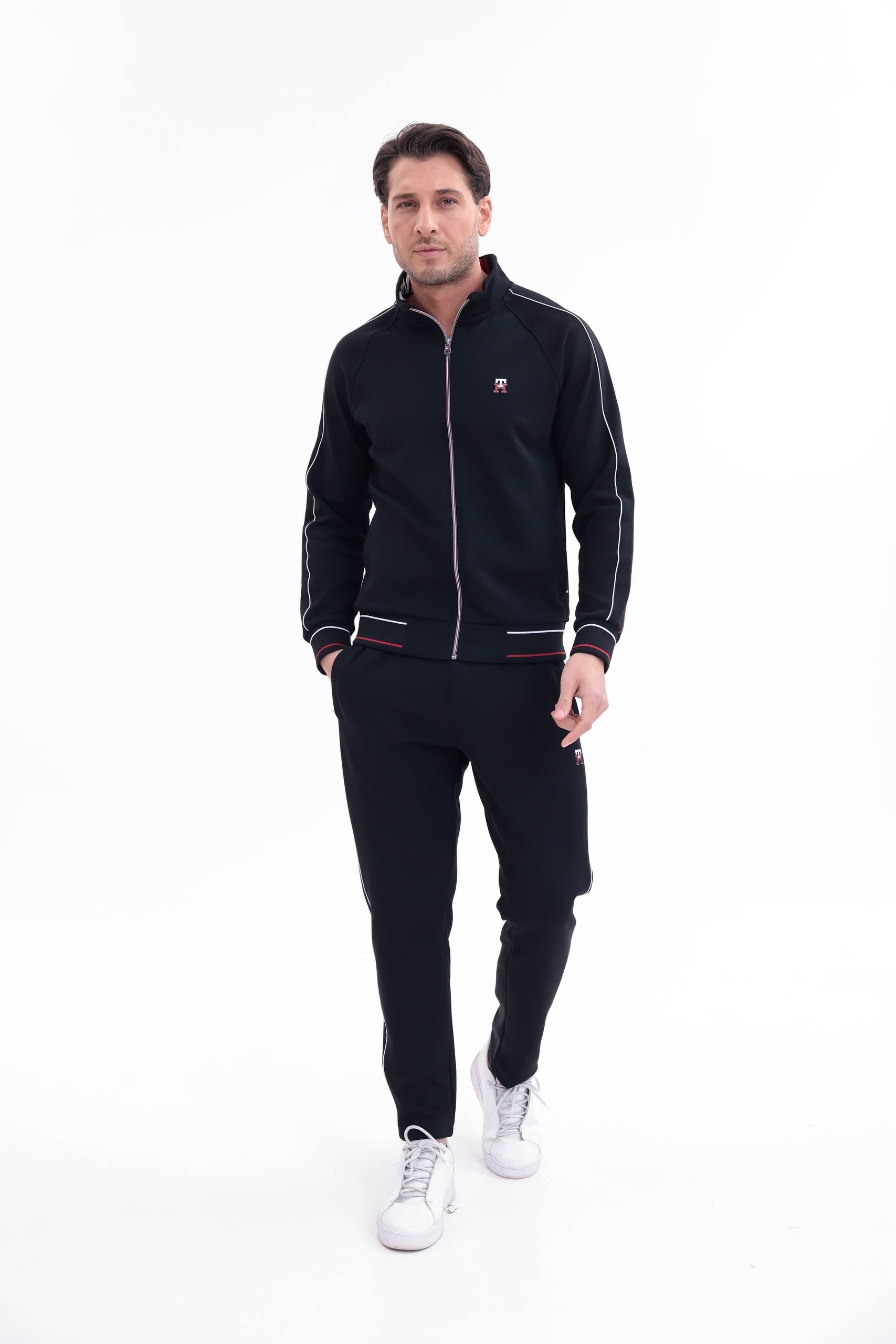Η ζακέτα διαθέτει όρθιο γιακά, full zip κλείσιμο και ριμπ τελειώματα σε μανσέτες και μέση, εξασφαλίζοντας σταθερή εφαρμογή και extra άνεση. Το παντελόνι διαθέτει ελαστική μέση με κορδόνι, πλαϊνές τσέπες και στενή γραμμή που αγκαλιάζει σωστά το σώμα χωρίς να περιορίζει την κίνηση.