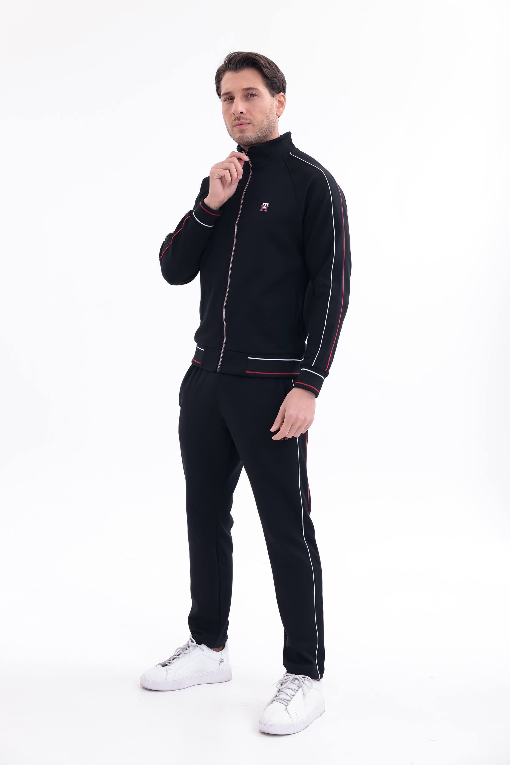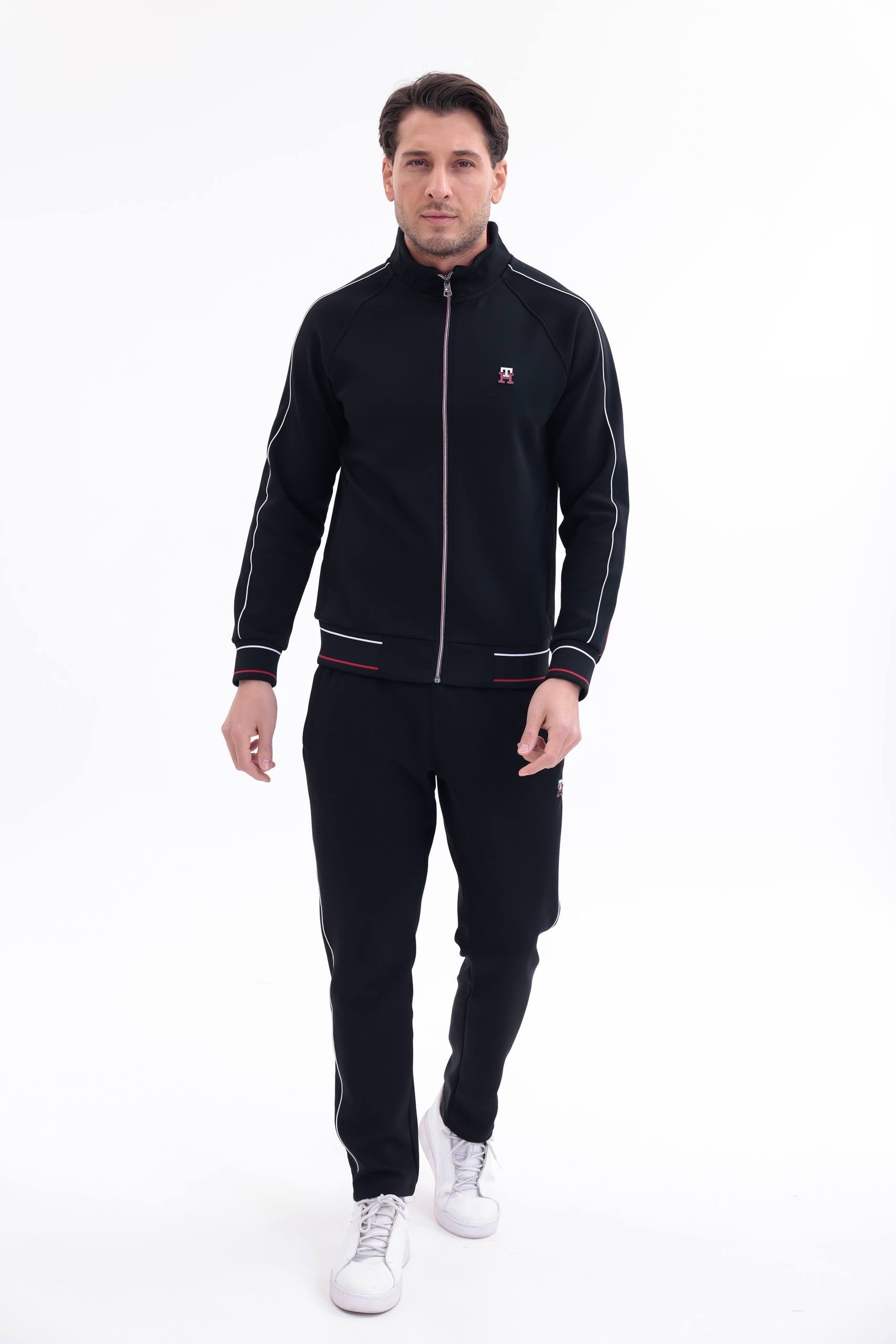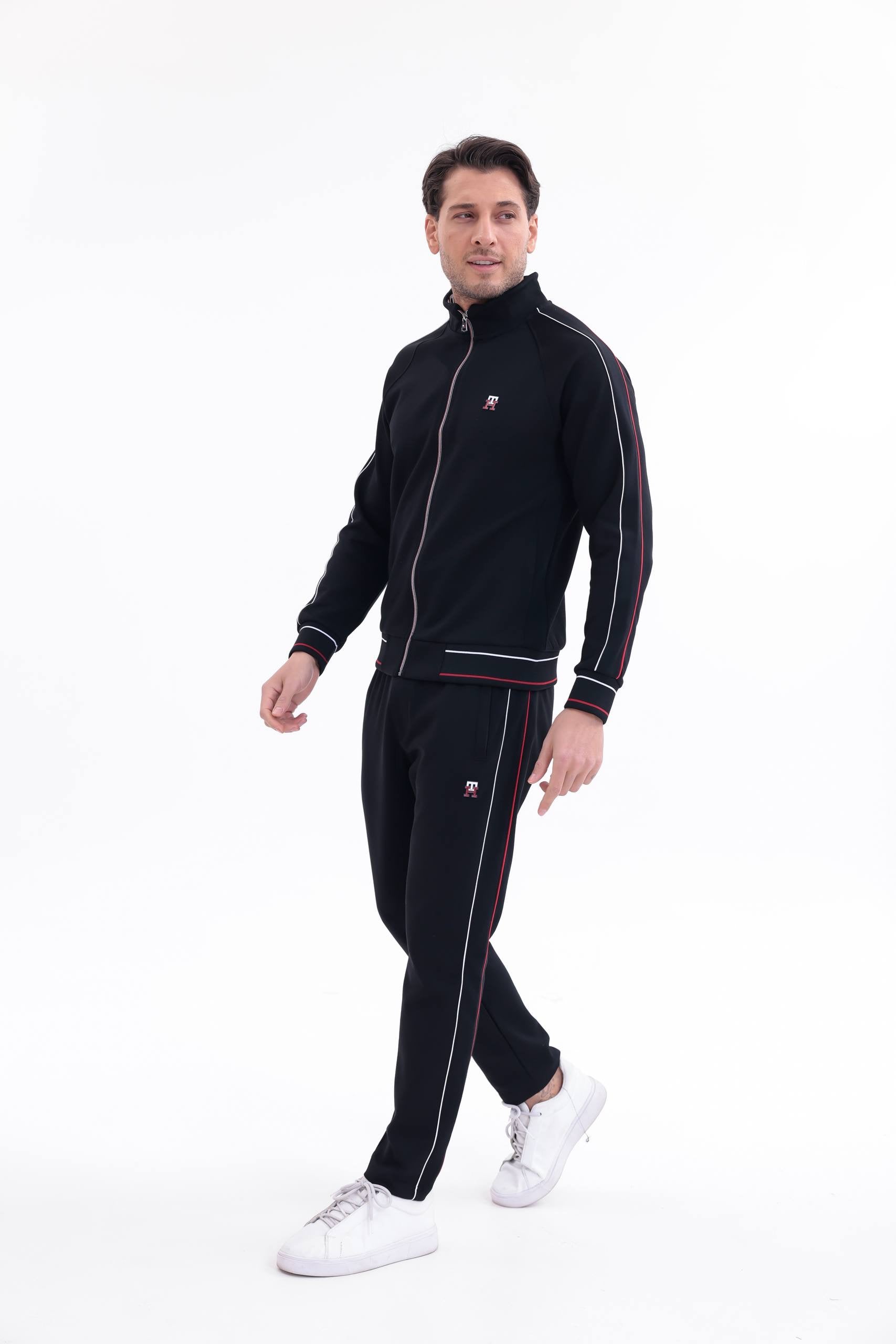 Η ζακέτα διαθέτει όρθιο γιακά, full zip κλείσιμο και ριμπ τελειώματα σε μανσέτες και μέση, εξασφαλίζοντας σταθερή εφαρμογή και extra άνεση. Το παντελόνι διαθέτει ελαστική μέση με κορδόνι, πλαϊνές τσέπες και στενή γραμμή που αγκαλιάζει σωστά το σώμα χωρίς να περιορίζει την κίνηση.